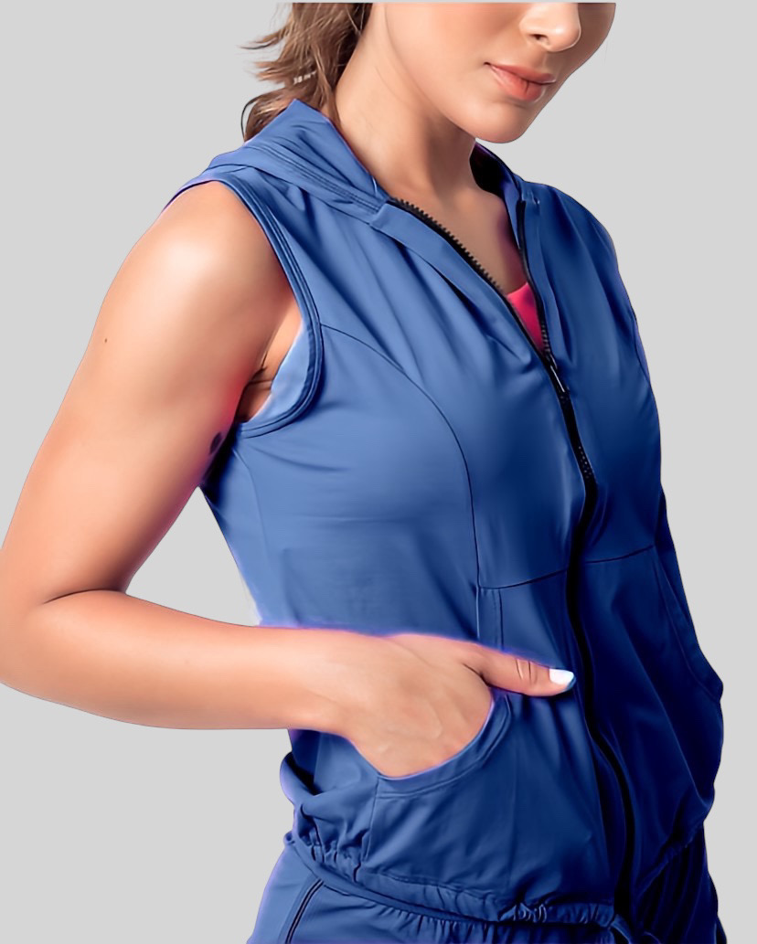 Colete Fitness com Capuz**, a peça perfeita para quem busca unir funcionalidade e design moderno em suas atividades físicas. Confeccionado com materiais de alta qualidade, este colete proporciona excelente respirabilidade e mobilidade, garantindo máximo desempenho nos seus treinos.